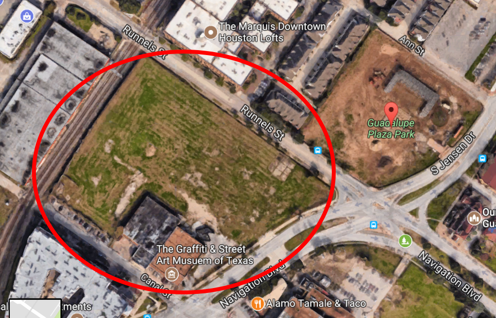 Guadalupe Plaza Park is located at the corner of Jensen St. and Navigation Blvd.